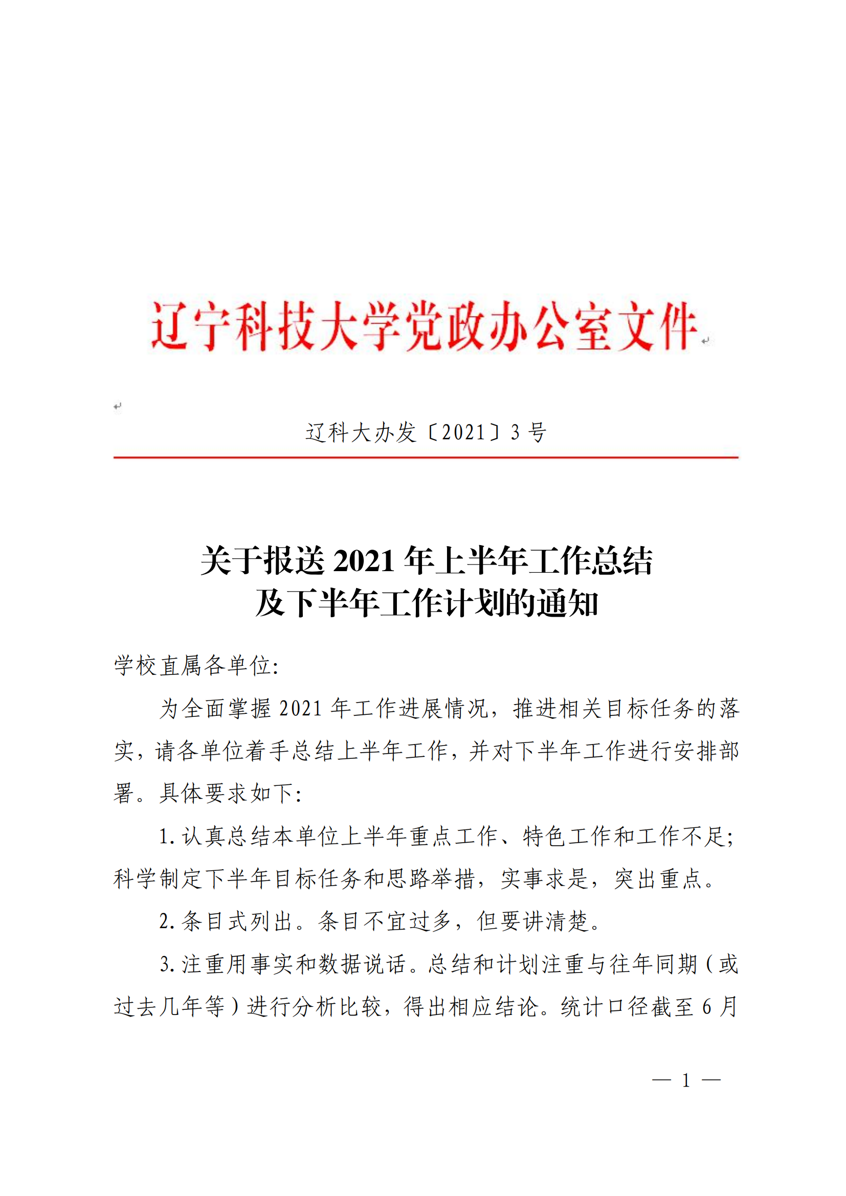 辽科大办发〔2021〕3号附件 2021年上半年工作总结和下半年工作计划参考模板.doc