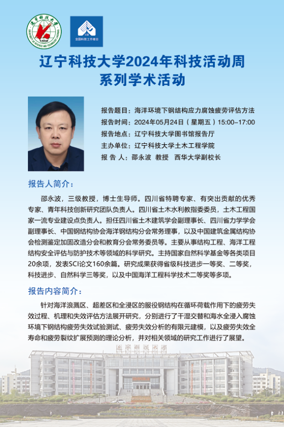【科技活动周学术预告】海洋环境下钢结构应力腐蚀疲劳评估方法-辽宁科技 - 九九精品视频一区在线久久久久久久久久毛片精品美女|国产99久久久久久免费看|中文精品99久久国产|国产69精品久久久久9999|精品久久久久久中文字幕无码|亚洲熟妇无码久久精品国产精品99|精品国产天堂综合一区在线官网