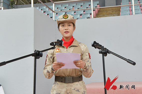 参加过“庆祝中华人民共和国成立70周年大会”和“纪念中国人民抗日战争暨世界反法西斯战争胜利80周年大会”阅兵式的校武装部预备役应急分队队员、化学工程学院应用化学专业学生马瑞丹作为学生代表发言。她号召辽科大学子要秉持“博学明德 经世致用”的校训,传承辽科大人身上流淌的“钢铁基因”,以青春锤炼担当为底气,以军训为起点,把青春热血融入强国梦想,把个人奋斗写进时代洪流,用实际行动践行“请党放心,强国有我”的铮铮誓言。