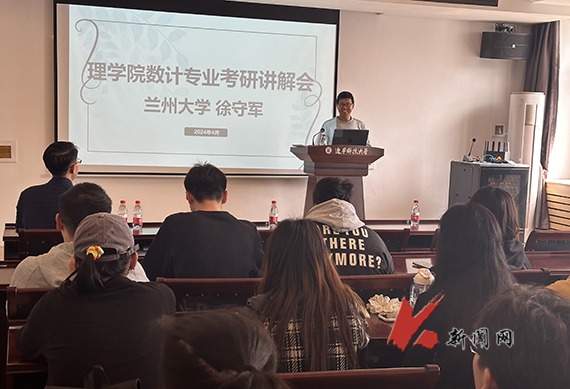 胡勇就物理学科的发展方向、课程体系和科研项目等情况开展讲解,他详细讲解了学科的国内国际发展态势,列举了2020-2023年硕士研究生的就业去向和薪资待遇,并就2024年物理学科考研录取情况进行分析,鼓励学生认清形势,坚定信心。徐守军讲解了数学学科目前的就业情况和未来的发展方向,介绍了兰州大学数学与统计学院师资力量、人才培养现状及学科建设情况,诚恳地给予学生们择校建议和备考时间安排建议,激发学生考研志向。