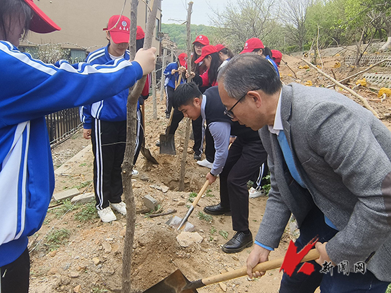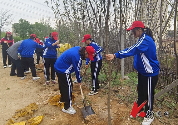 到达植树地点后,师生迅速分成几组开始种树,大家挥锹挖土、扶苗培土、夯苗浇水……各个环节衔接有序。经过师生的共同努力,100多棵树苗挺立在了这片充满生机的热土上,承载着大家的希望,为城市增添了新的活力。