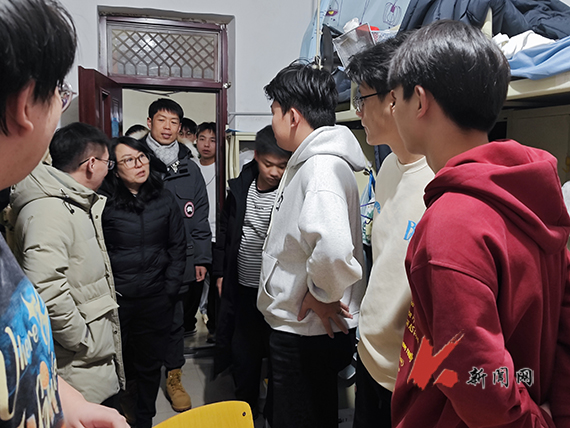 在学生寝室,学院领导详细询问了大家备战考研的情况,分析近年来考研形势,就近期复习、考场纪律、起居和饮食等方面叮嘱,鼓励他们要把握好最后的冲刺阶段,保持正常心态,考取理想的院校。