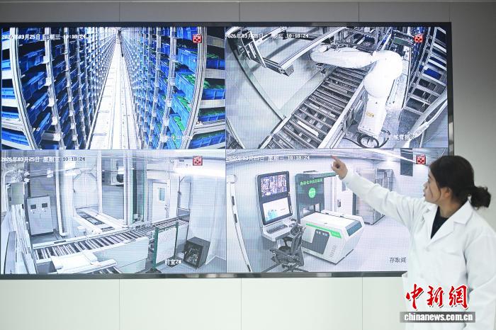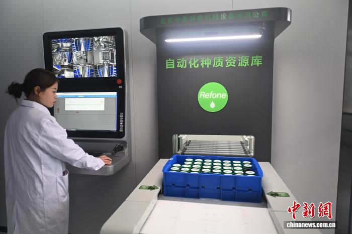 3月26日,正在位于苦肃省定西市陇西县的邦家药用动物种量资本库苦肃库智能库内乱,任务职员经由过程屏幕显现主动化存与作战存与种子进程。中新社记者 李亚龙 摄